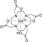 Abbildung der chemischen Struktur der makrozyklischen Gadotersäure (lineare GD-haltige MRT-Kontrastmittel wurden Anfang 2018 verboten oder in der Verwendung eingeschränkt.)